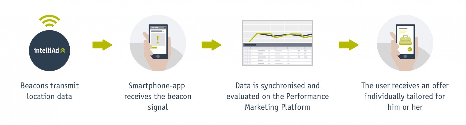 - Comprehensiveness: Ensuring successful use of beacon technology requires that it is embedded in a comprehensive and customised marketing strategy and includes 360° Customer Journey Tracking. This makes techniques such as cross-retargeting possible i.e. the targeted offline communication with online users and vice versa.